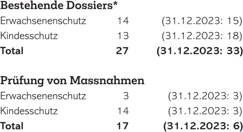 *pro Klient/-in ein Dossier, auch wenn mehrere Massnahmen
